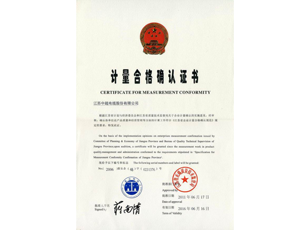 Honor > 计量合格认证书