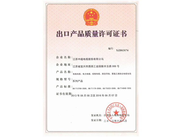 Honor > 出口质量许可证