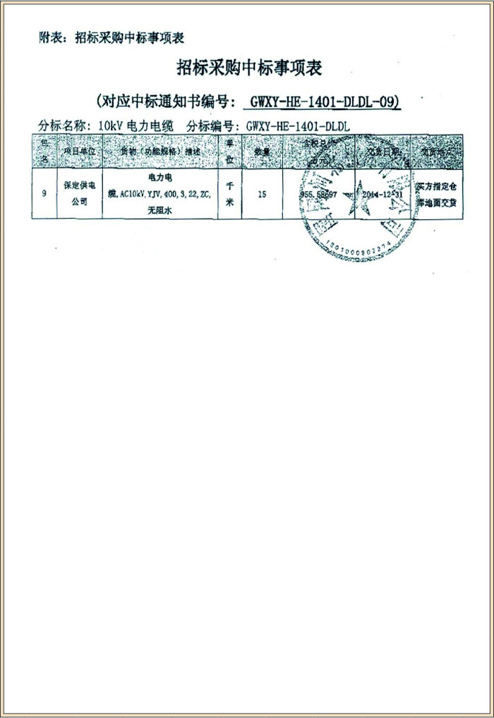国家电网公司河北电网2014年第一批配网线路材料集中招标项目(中标号GWXY-HE-1401-DLDL-09)