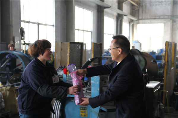 3月8日,中超控股总经理张乃明、公司党委副书记卢跃中在百忙之中抽出时间亲自将节日鲜花和礼物送到每位女职工手中,并亲切地与每位女职工握手交流,感谢她们在各自的岗位上挥洒汗水与激情,感谢她们为公司发展做出的无私奉献和积极贡献,并勉励大家一如既往做好本职工作,巾帼不让须眉,争做岗位标兵。