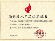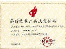 201711 66kV及以上含有高导电涂层的防水型高压电缆——高新技术产品认定证书