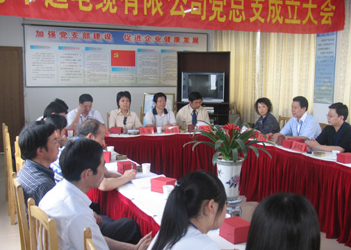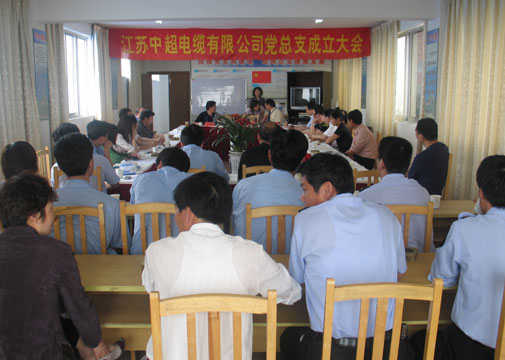 经过积极的筹备,2007年5月15日江苏中超电缆有限公司隆重召开了党总支、团总支成立大会,市组织部科长杨祖良、共青团市委书记方力、徐舍镇党委副书记马敏等莅临公司指导工作,与会的还有董事长杨飞、总经理陈友福等公司领导。