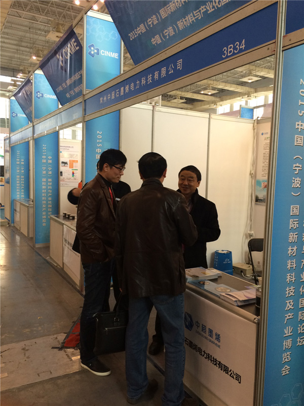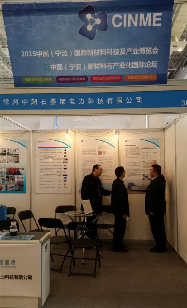 11月30日-12月2日,2015中国(宁波)国际新材料科技与产业博览会在宁波国际会展中心举行,此次展会是新材料企业、装备制造企业及科研院校进行互动的良好平台和机遇,来自新材料、能源、汽车工业、航空航天、轨道交通、电子电器产业界和科研院校的300多家单位参展。公司副总经理霍振平带领研发中心及子公司常州中超石墨烯电力科技有限公司相关人员参加了展会。作为本届博览会的一大亮点,“石墨烯材料及应用”无疑吸引了很多参会者的目光。