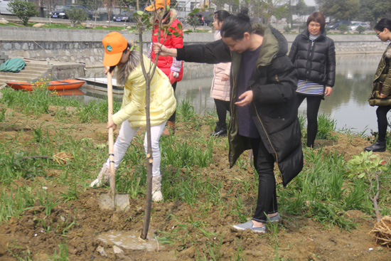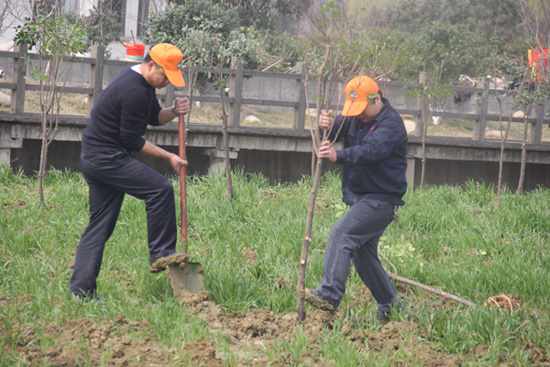 当天下午一点,活动负责人向大家分发了植树工具,并编排了小组,分派了每个小组种植十五棵树的任务,并强调了植树过程中应该注意的事项。随着公司领导一声令下,大家立即行动起来,纷纷挽起袖口,铲土、挖坑、放苗、培土,个个干劲十足,大家齐心协力、分工合作,转眼间原本光秃秃的平地就种满了各类大小树苗,放眼望去,一片绿色,盎然生机呼之欲出。一棵棵树苗的栽下,象征着公司蓬勃发展的前景与希望;每一滴汗水的流下,代表着公司每一位员工的奉献与关爱。