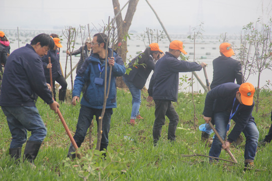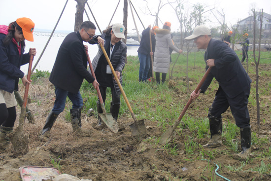 春风拂面,乍暖还寒,一年一度的植树节也随着春天的脚步来临。为了营造更美好的工作生活环境,提高广大员工的生态环保意识和社会责任意识,3 月11日,在公司总经理张乃明的带领下,来自各部门、条线的80余名员工代表在厂区美丽的西氿湖畔开展了植树活动。