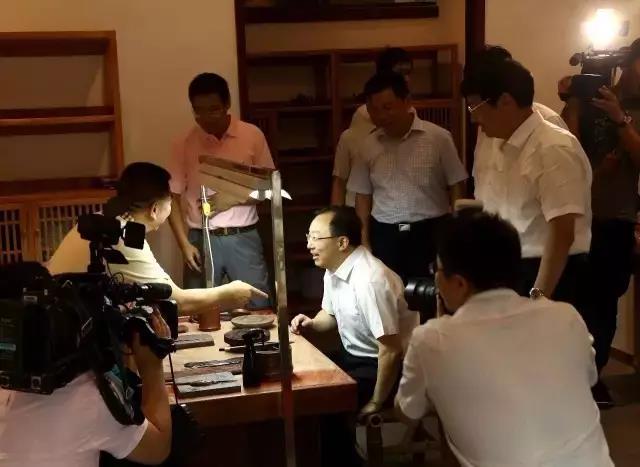 接着,吴省长一行人又来到艺师工作室,并坐在泥案前,与在做现场指导的中国陶瓷艺术大师季益顺亲切交谈,详细地了解起紫砂文化与工艺。