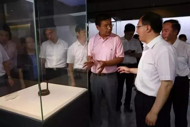 最后,吴省长一行走进利永紫砂博物馆。在顾景舟专馆里,杨飞董事长向吴省长详细介绍了顾景舟大师的此乐提梁等作品,又参观了七大老艺人、民国、明清等展馆。各位领导在一件件历代大师精品前驻足流连、意犹未尽。吴省长对中超这么多年不遗余力地从全国、全世界收集历代紫砂艺术珍品,对弘扬紫砂文化的努力大加赞赏。
