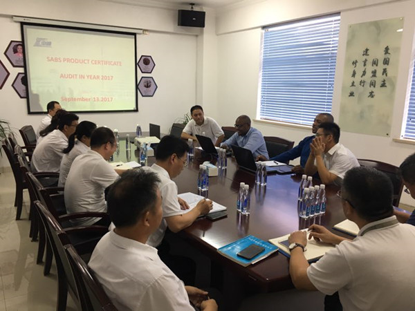 9月13日,南非标准局审核专家来华对公司南非SABS认证进行了年度监督现场审核,在对公司生产现场、工艺流程、质量保证、产品检测、售后服务等方面进行了全方位细致的核查后,专家们认为各项结果全部符合标准要求,最终评定公司通过2017年度评审。