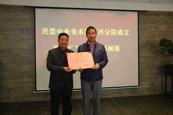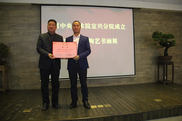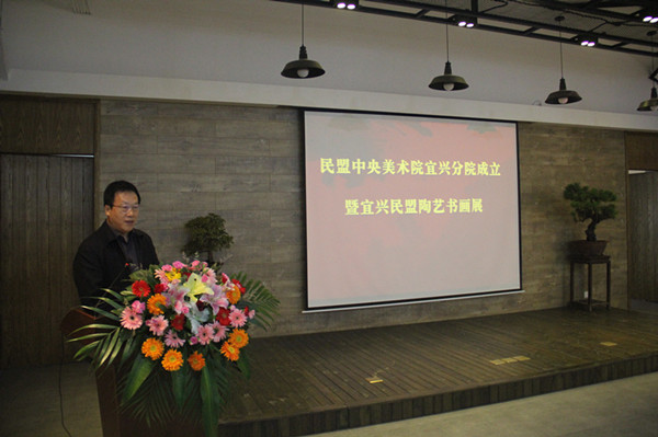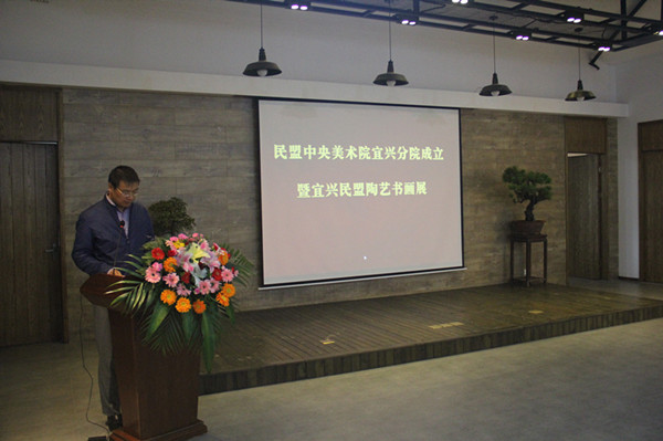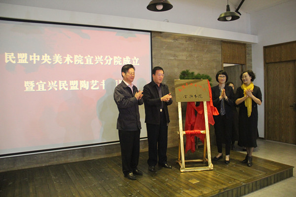 仪式上,曲伟宣读了民盟中央美术院成立宜兴分院的批复,唐双辰宣布了宜兴分院的组织机构,张平、唐双辰、高亚光、周中平共同为民盟中央美术院宜兴分院揭牌。