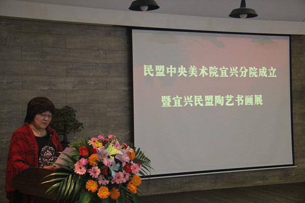 民盟中央宣传部部长、民盟中央美术院秘书长曲伟在仪式上发表了重要讲话,她指出,宜兴人文底蕴深厚,民盟中央美术院分院的落户,不仅具有得天独厚的优势,也为宜兴的陶瓷艺术发展注入了全新的动力和活力,必将进一步推动中华民族优秀文化的传承和发扬,为促进社会主义文化大发展大繁荣和地方经济文化建设发挥重要的积极作用。她希望政府及民盟组织为艺术家盟员在宜兴的创作和发展提供便利环境;欢迎各门类的艺术与宜兴的陶瓷书画艺术积极碰撞,多交流沟通,共同取长补短,将中国的文化艺术推向新的高度。