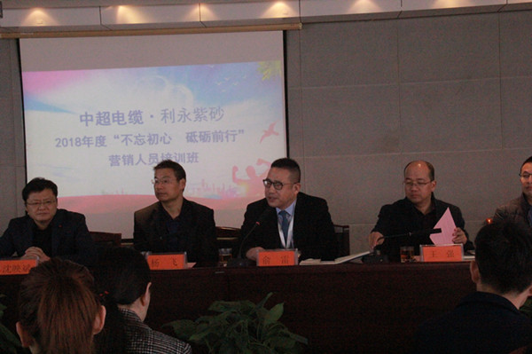 金鸡报晓去, 瑞犬迎新来。2月26-28日,公司开展了“不忘初心、砥砺前行”新春营销培训班。中超电缆和中超利永紫砂的百余名营销精英迎着早春的暖风齐聚一堂,开始为期三天的培训。中超集团董事长杨飞、公司总经理俞雷、中超利永紫砂陶总经理沈映斌以及部分营销条线的高管出席了本次培训开班典礼,典礼由俞雷主持。