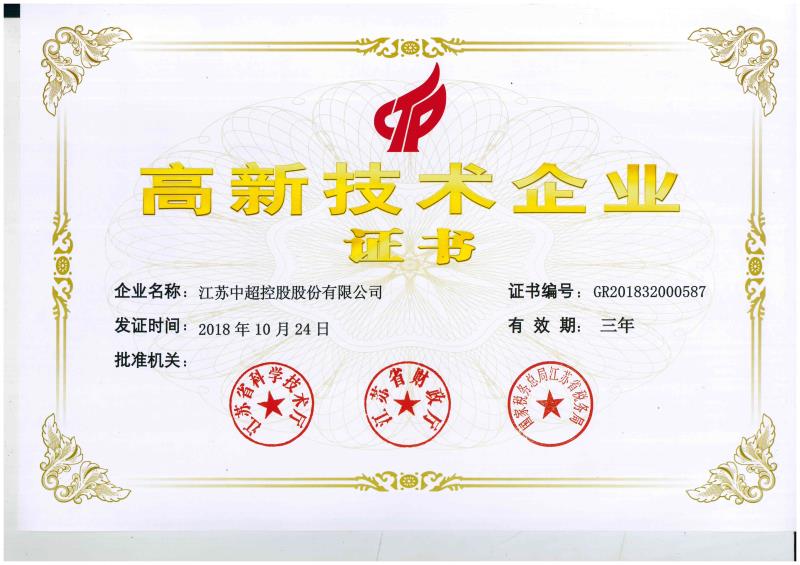 喜报!中超控股再次荣膺国家高新技术企业