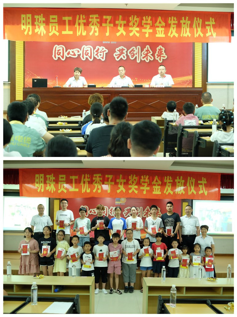 8月19日下午,中超控股旗下子公司明珠电缆举行2018-2019学年度明珠优秀子女奖学金、助学金发放仪式。中超控股总经理、明珠电缆董事长张乃明,明珠电缆总经理刘洪斌及明珠电缆工会主席刘美娟出席活动。