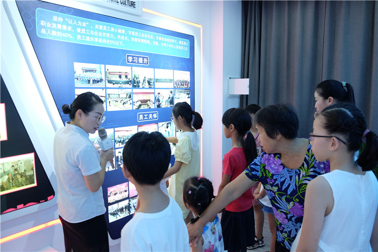 活动开始前,明珠电缆行政企管部部长卢亚丽带领学生和家长们参观了公司智能展厅和职工书屋,让职工子女了解了公司的发展历程、企业规模、生产产品以及文化建设方面的成果。