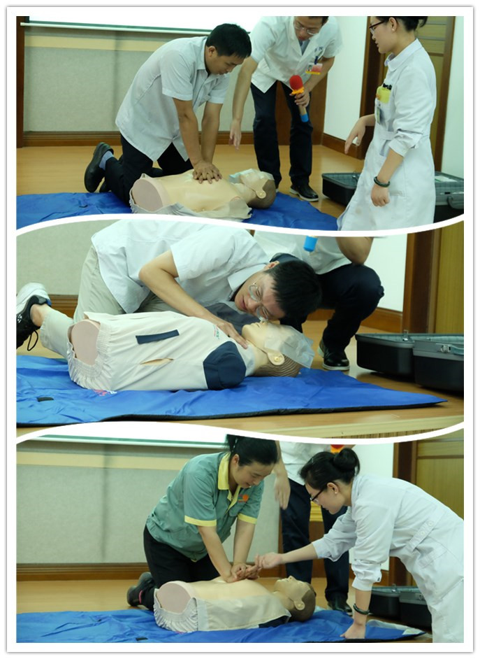 官林医院郭院长现场讲解了中暑、烧灼伤、电击伤等情况所应采取的急救措施,并通过模拟实操,手把手地指导,详细介绍了心肺复苏紧急救护知识。
