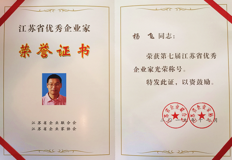 12月22日下午,江苏省企业家联合会、江苏省企业家协会在南京隆重召开“第七届江苏省优秀企业家表彰会”。会上,中超集团董事长杨飞荣获“第七届江苏省优秀企业家”称号。