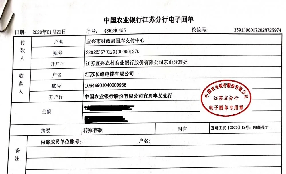 2020年初,中超控股旗下子公司长峰电缆收到了宜兴市财政局一笔关于“陶都英才”的拨款奖励,意味着公司的研发项目又一次得到了认可!